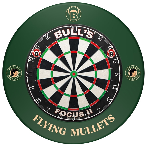 Focus II darttavla kombinerad med en unik Flying Mullet skyddsring.