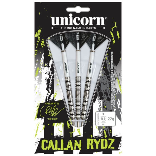 Dessa Phase 2 darts är tillverkade i 90% tungsten och utrustade med Callans ikoniska "The Riot"-logotyp samt svart/vita ränder – en hyllning till hans hemstad Newcastle. Designet kombinerar professionell prestanda med en personlig touch som gör dem helt unika.