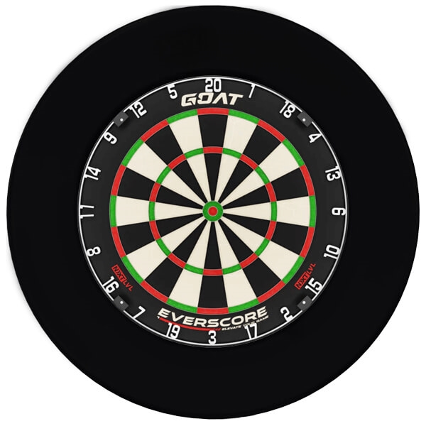 En stark allround darttavla kombinerad med en stilren svart skyddsring.