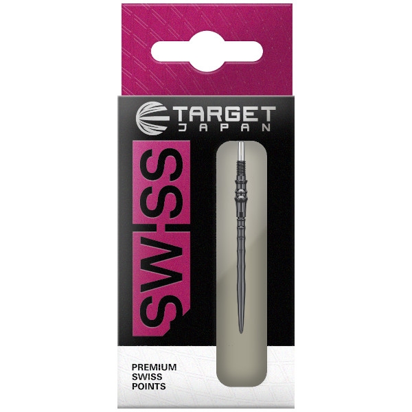 Japan Premium Swiss Point är den första Swiss Point-modellen utvecklad av Target Japan och sätter en ny standard för precision, hållbarhet och design. De levereras i PVD Black och PVD Silica och finns i 30 mm, 35 mm och 40 mm, så du kan matcha utseende och längd perfekt till dina dartpilar.