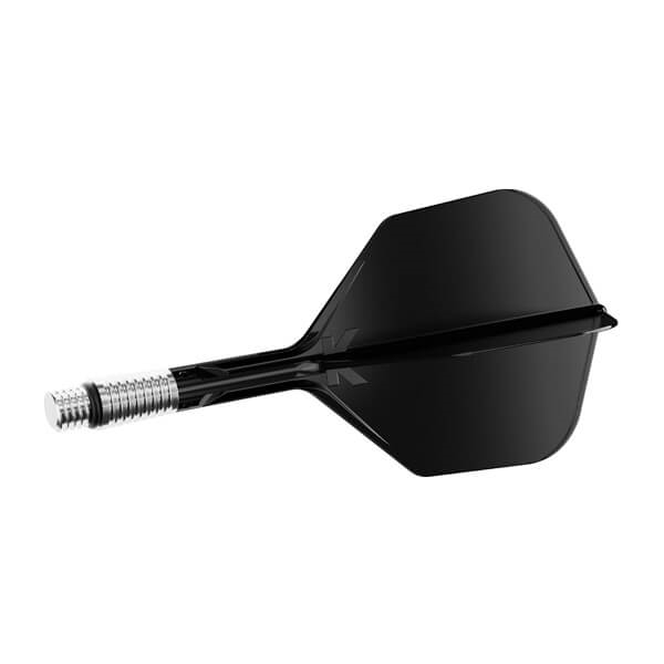 Basen på skaftet är tillverkad i lätt aluminium med radiala räfflor för bättre grepp vid montering och demontering. En gummiring och 2BA-gänga säkerställer en fast och stabil anslutning till dartpilen, samtidigt som systemet kan röra sig kontrollerat vid behov.