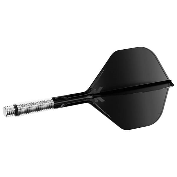 Basen på skaftet är tillverkad i lätt aluminium med radiella räfflor för bättre grepp vid montering och demontering. En gummiring och 2BA-gänga säkerställer en fast och stabil anslutning till dartpilen, samtidigt som systemet kan röra sig kontrollerat vid behov.