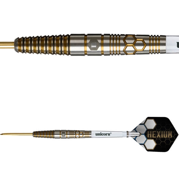Pilarna är utrustade med patenterade Volute-stålspetsar i guld, som är designade för att minimera bounce-outs och förlänga darttavlans livslängd – ett kännetecken på Unicorns tekniska innovation.