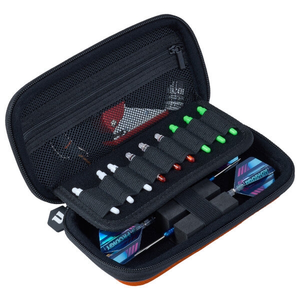 Den lilla Vanguard-modellen rymmer ett komplett set sammansatta dartpilar, sex flightfickor, nio skaft-hållare och ett praktiskt blixtlåsfack för extra tillbehör.